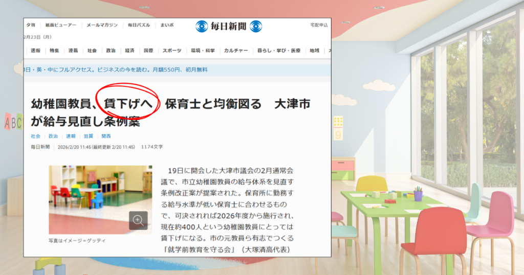 幼稚園教諭の賃下げニュース